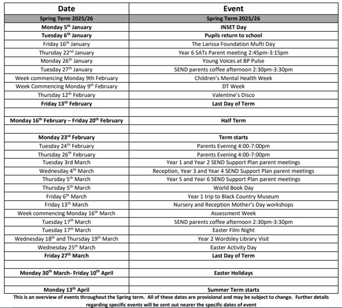 Below you will find key dates and information for the term ahead.