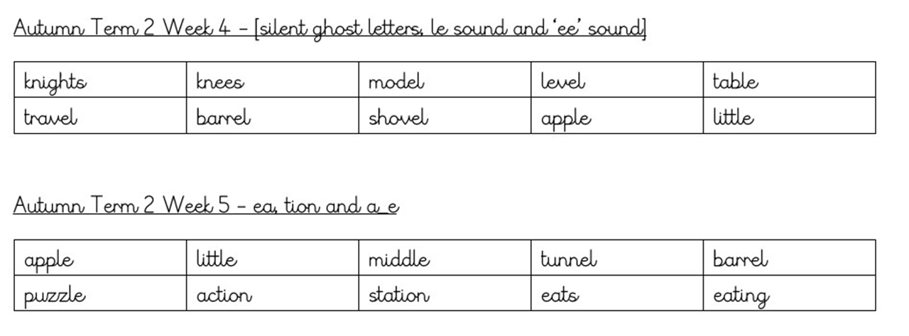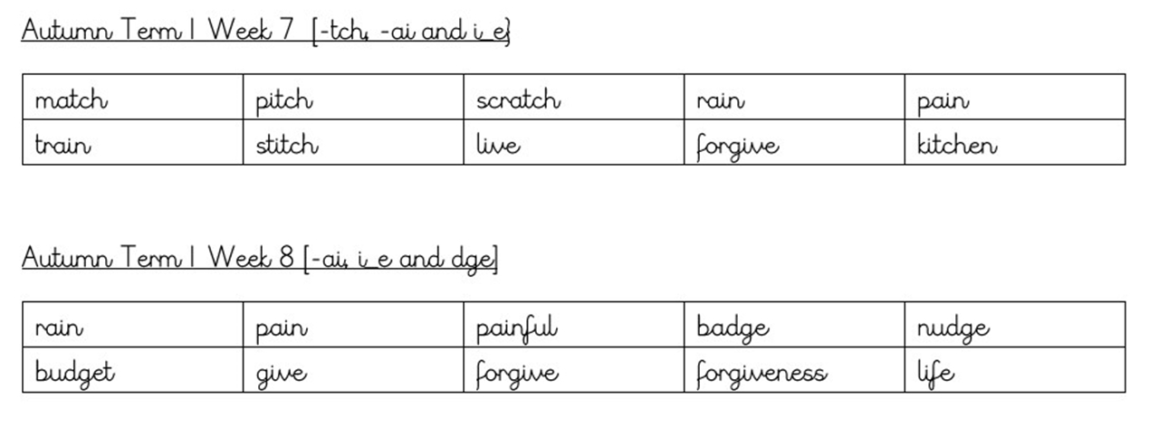 - Over the course of the week, children learn how to spell a set amount of words that include that phoneme